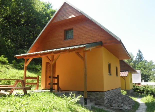 Chaty č. 6-8 jsou srubového typu a jsou v provozu od června do září. V přízemí je obývací pokoj s posezením (rozkládací pohovka), kuchyňka s chladničkou, el. indukčním vařičem, mikrovlnnou troubou, varnou konvicí, nádobím, kuchyňskou rohovou lavicí k sezení aj., koupelna se sprchovým koutem a WC a jeden 2-lůžkový pokoj. Na vyvýšeném empore (vhodné pro osoby starší 8 let) se nachází 2 lůžka jako přistýlky. Vytápění všech objektů je el. přímotopy, ohřev vody boilerem.